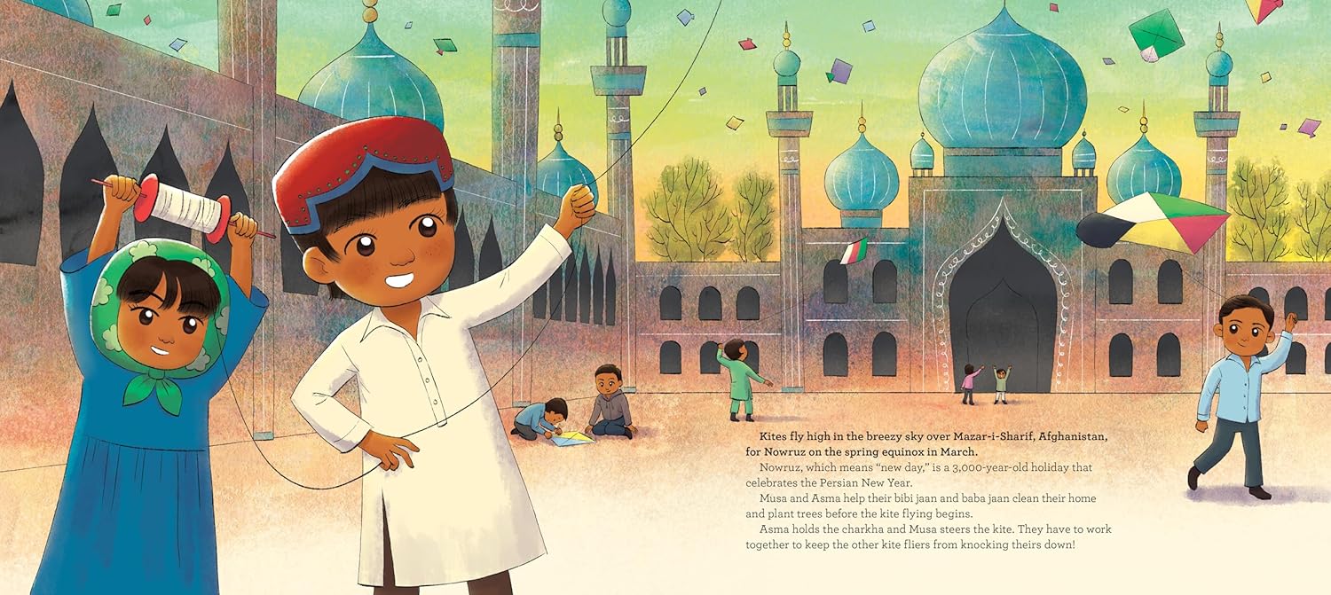 Kites have been flown for nearly 3,000 years by people all over the world. In A Year of Kites, take a journey through kite-flying festivals in countries from Greece to New Zealand, from South Africa to Japan. Discover how kids fly kites in twelve unique places and be inspired by the beautiful kites that have captivated people across cultures and throughout history.